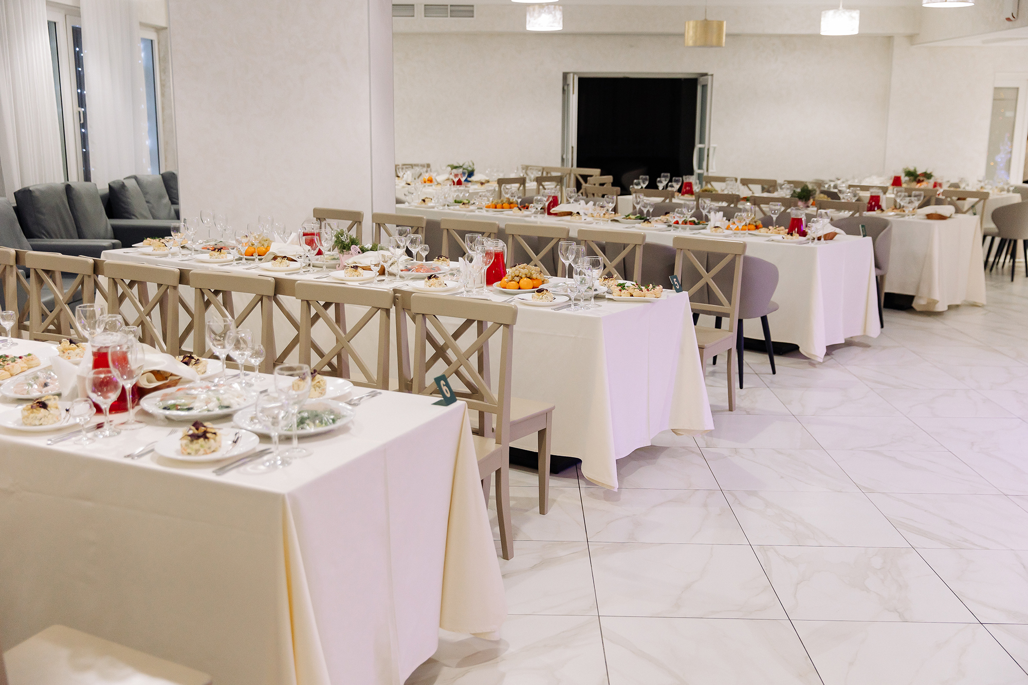 Зал подойдет для камерного торжества в кругу самых близких. VIP-зал рассчитан на 20 посадочных мест.