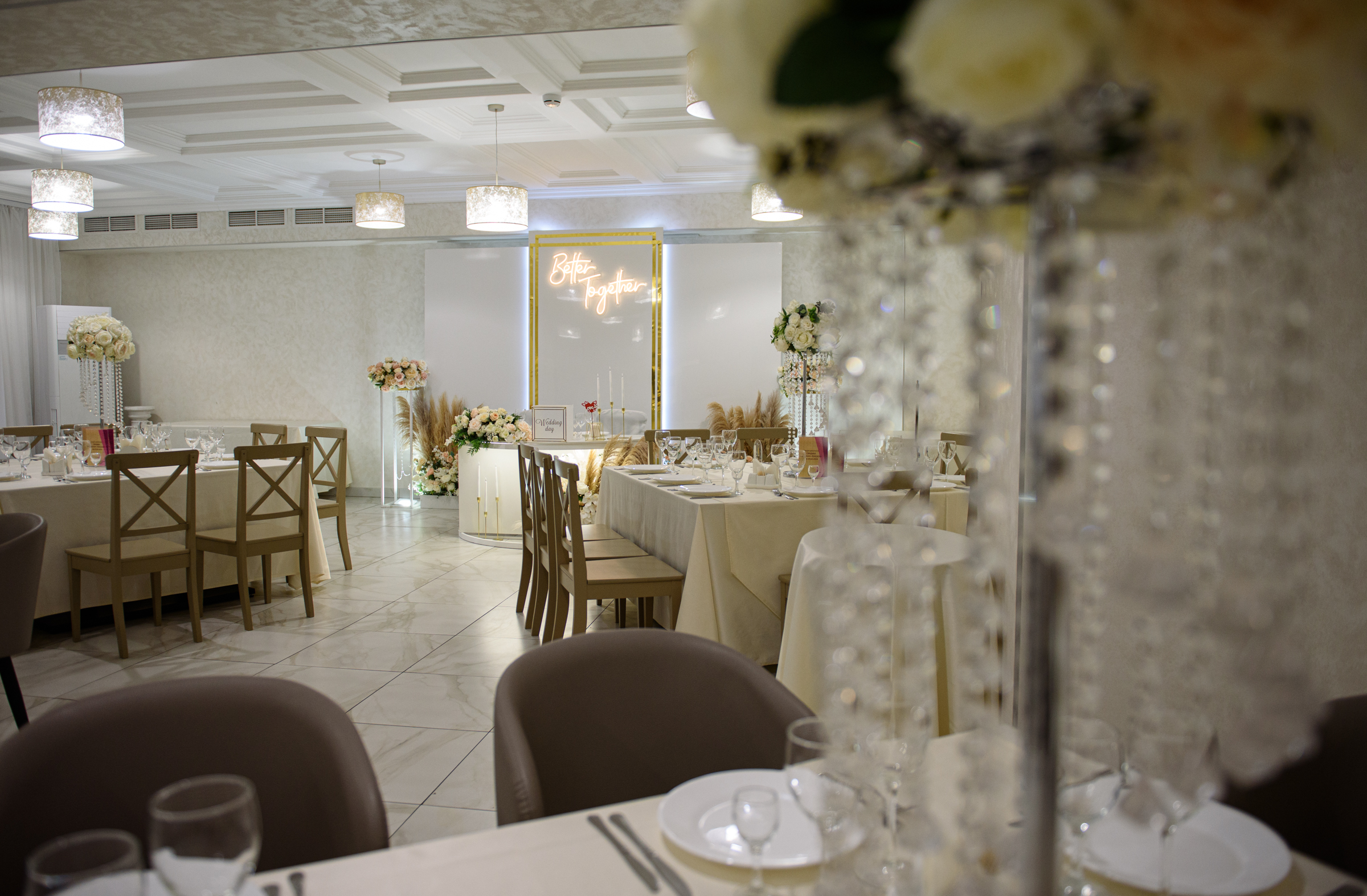 Зал подойдет для камерного торжества в кругу самых близких. VIP-зал рассчитан на 20 посадочных мест.